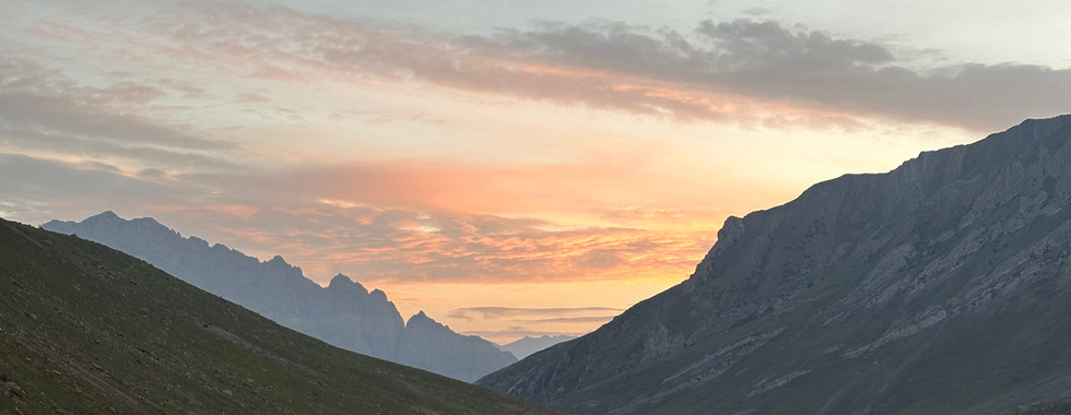 For the first section of the hike, we gradually headed up the side towards the ridge. The view was phenomenal as the morning light backlit the mountains, creating a layered landscape with rays of light filtering through. I took the time to take in the scenery, knowing that it would be the last day to immerse in this surreal beauty of a landscape.