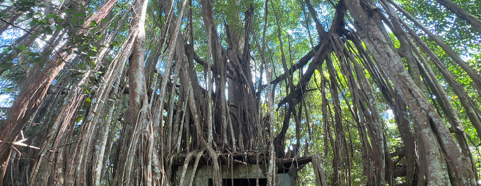 After circling the area for a bit, I spotted a huge tree with long roots, and walking around it we saw that it grew around a hut. It was alot bigger and more majestic that I had imagined, with its long hanging roots encircling a big area around the hut. Was this meant to camouflage the hut? For what purpose was this hut built for?